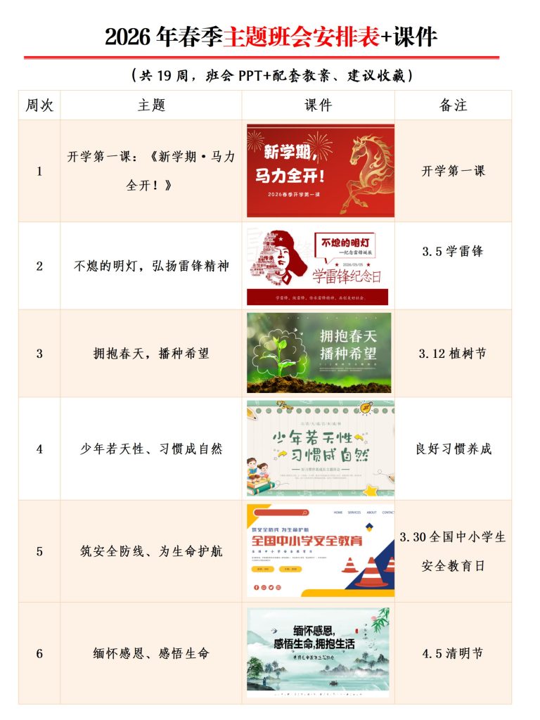 2026年春季主题班会安排表+PPT课件 2026-03-11 教育教学 3 资源下载此资源仅限终身VIP下载,请先登录 资源下载下载价格终身VIP专享仅限终身VIP下载升级终身VIP请先登录 原文链接:https://ruanjian6.com/6924/.html,转载请注明出处。 0