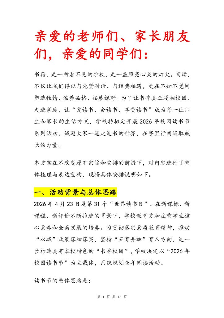 2026年中小学“世界读书日”活动方案 2026-04-01 教育教学 3 资源下载此资源仅限终身VIP下载,请先登录 资源下载下载价格终身VIP专享仅限终身VIP下载升级终身VIP请先登录 原文链接:https://ruanjian6.com/7223/.html,转载请注明出处。 0