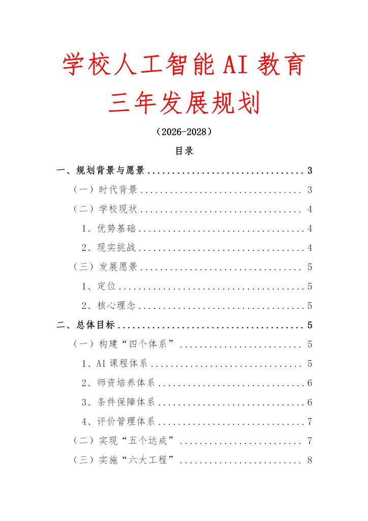 2026年学校人工智能AI教育三年发展规划(2026-2028) 2026-04-14 教育教学 5 资源下载此资源仅限终身VIP下载,请先登录 资源下载下载价格终身VIP专享仅限终身VIP下载升级终身VIP请先登录 原文链接:https://ruanjian6.com/7346/.html,转载请注明出处。 0
