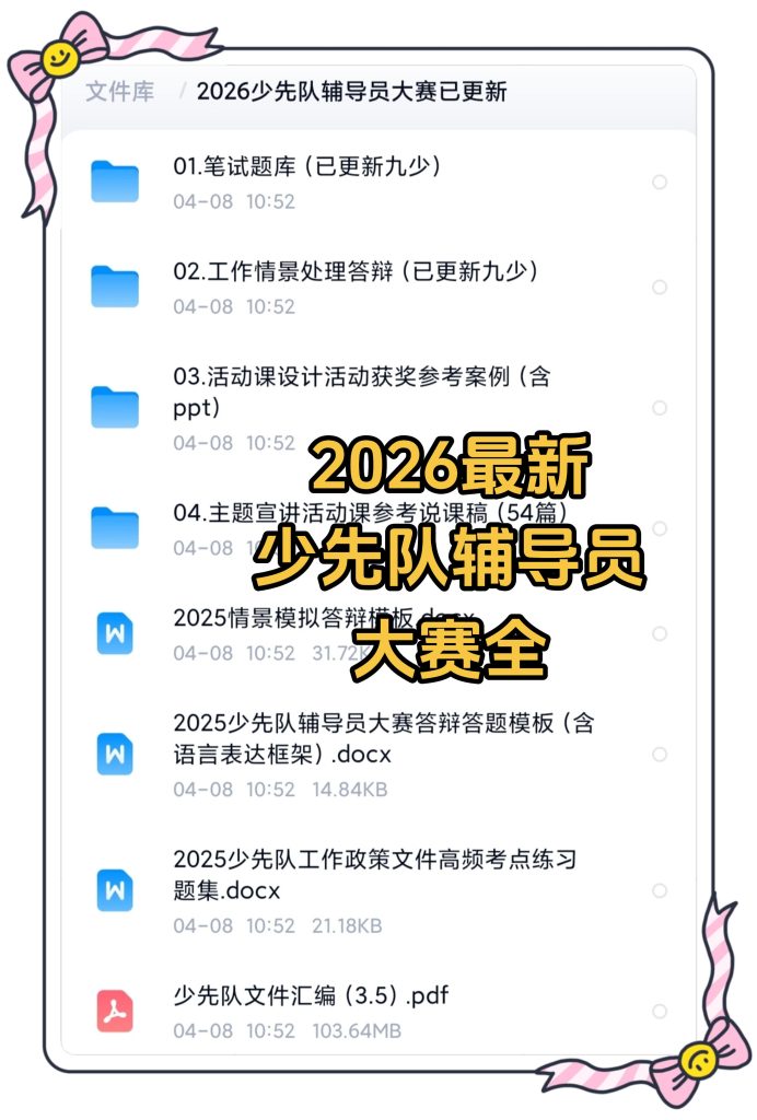 2026年少先队辅导员技能大赛题库 2026-04-20 教育教学 2 资源下载此资源仅限终身VIP下载,请先登录 资源下载下载价格终身VIP专享仅限终身VIP下载升级终身VIP请先登录 原文链接:https://ruanjian6.com/7410/.html,转载请注明出处。 0